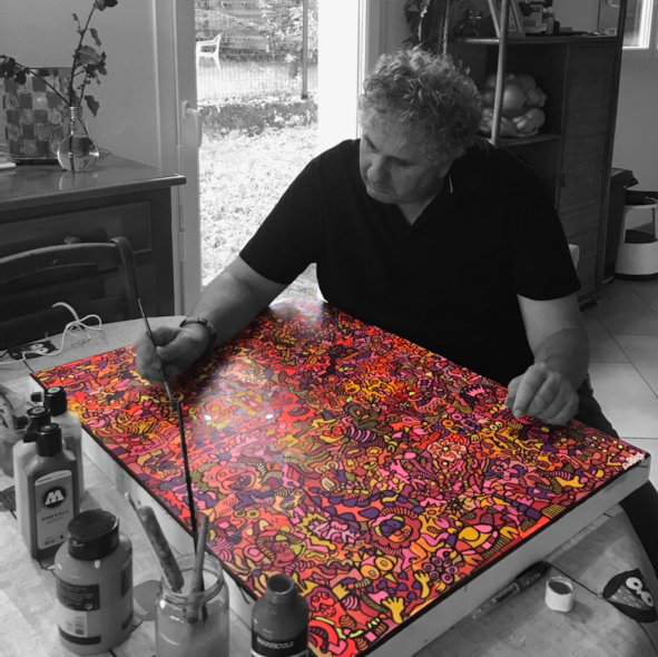 Yannick Brem, alias cubrix, is a French-Swiss artist in his early 60s. He materializes on canvas his emotional hypersensitivity using mixed thechniques, acrylics, pastel and collage.